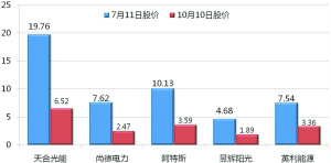 今年,不少光伏企業(yè)的掌舵人都有些心焦受產(chǎn)能過剩、歐美國家削減補貼等影響,光伏組件價格全線下跌。來自中國有色金屬協(xié)會硅業(yè)分會9月28日的統(tǒng)計,國內(nèi)多晶硅現(xiàn)貨主流報價為35—39萬元/噸,比2月15日68—74萬元/噸的報價低了差不多一半;而光伏電池組件價格也在過去3個月內(nèi)下降了30%以上。最近3個月以來,中國光伏企業(yè)在美國股票市場股價也是全面下滑,有的股票甚至縮水超六成。