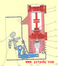 高壓真空斷路器的實際結構中,觸頭合閘彈簧設計成即使處于分閘位置,也有相當?shù)念A壓縮量,有預壓力。這是為使合閘過程中,當動觸頭尚未碰到靜觸頭而發(fā)生預擊穿時,動觸頭有相當力量抵抗電動力,而不致于向后退縮;當觸頭碰接瞬間,接觸壓力陡然躍增至預壓力數(shù)值,防止合閘彈跳,足以抵抗電動斥力,并使接觸初始就有良好狀態(tài);隨著接觸行程的前進,觸頭間的接觸壓力逐步增大,接觸行程終結時,接觸壓力達到設計值。接觸行程不包括合閘彈簧的預壓縮量程,它實際上是合閘彈簧的第二次受壓行程。