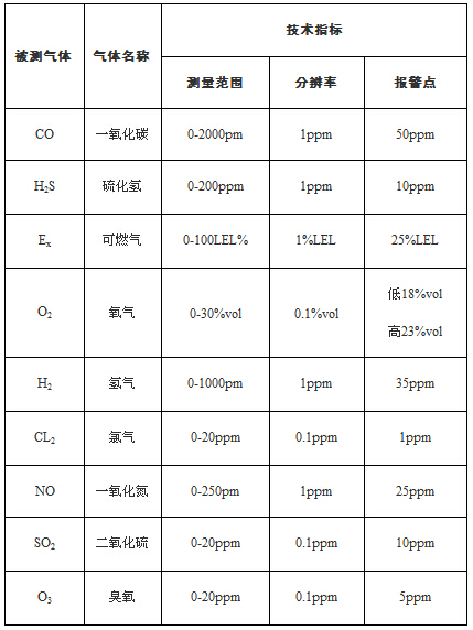便攜式單一氣體檢測(cè)儀技術(shù)參數(shù)