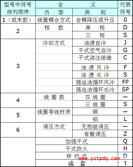 變壓器的型號和符號含義