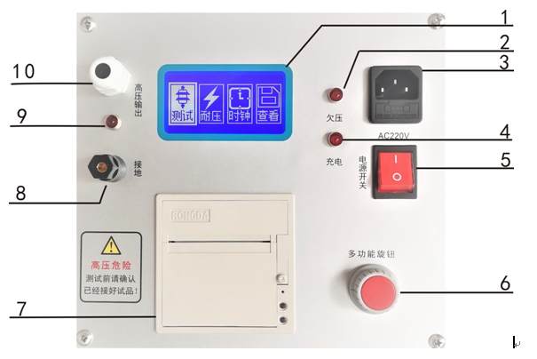 氧化鋅避雷器直流參數(shù)測(cè)試儀面板介紹