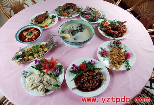 據(jù)說用呼倫湖產(chǎn)的鮮魚和湖蝦,最多可烹制魚菜120多種,一般是12、14、20道魚菜上桌,總名之為“全魚宴”,有鯉魚跳龍門、家常熬鯽魚、梅花鯉魚、油浸鯉魚、松鼠鯉魚、湖水煮魚、魚卷、荷包鯉魚、煎悶白魚等。www.szfsgc-sz.com大概還是魚的品種少了,做來做去無非就是那些魚在翻花樣,就像一場戲,由于演員少,一個人往往要頂三四個角色,很是無趣。不過吃過了,抹抹嘴,你得老老實實地承認:“好吃!是好吃!”