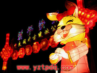 2006年春節(jié),揚(yáng)州工藝廠設(shè)計(jì)制作的一批傳統(tǒng)彩燈被送到了寶島臺(tái)灣。記者了解到,在這批花燈中,“百犬迎春”中一條大麥叮犬,長10米,高9米,體重達(dá)10噸,運(yùn)用電腦科技制造出聲、光電動(dòng)效果,會(huì)搖頭、昂首、動(dòng)耳、擺尾,動(dòng)作自然,會(huì)講十五種語言。及至今年,揚(yáng)州花燈已連續(xù)6年春節(jié)為臺(tái)灣佛光山寺制作并展出了一批大型彩燈。