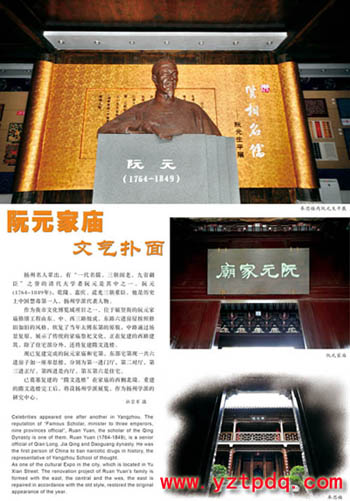 阮元歷任清代山東、浙江學政,內閣學士,禮、兵、戶、工等部侍郎,浙江、江西巡撫,云貴總督,體仁閣大學士。阮元著書近千卷,對后世影響極大。他是中國歷史上禁毒第一人,也是中國訓詁學創(chuàng)始人、揚州學派代表人物,被家鄉(xiāng)人譽為“三朝元老、九省疆臣、一代名儒”。