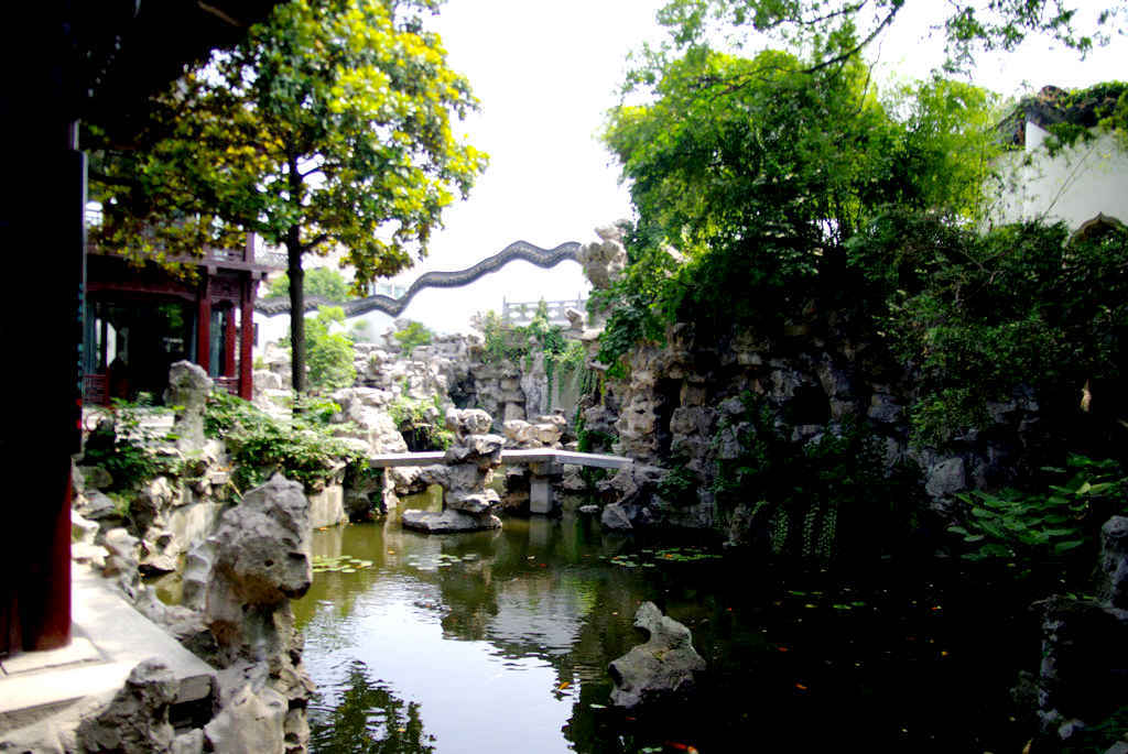 小盤谷在揚(yáng)州園林中有獨(dú)到之處,與個園、何園相比,小盤谷占地很小,建筑物和山石也不多,但妙在集中緊湊,以少勝多,即小見大。水池、山石和樓閣之間,或幽深,或開朗,或高峻,或低平,對比鮮明,節(jié)奏多變,在有限的空間里,因地制宜,隨形造景,產(chǎn)生深山大澤的氣勢,咫尺天涯,耐人尋味,這是其他園子所不能相比的。