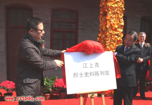 揚(yáng)州市委書記、市長(zhǎng)謝正義,江上青烈士親屬代表彭健明為史料陳列館揭牌。省民政廳常務(wù)副廳長(zhǎng)侯學(xué)元,以及徐益民、趙旻、張躍進(jìn)、張愛軍、袁秋年、盧桂平、陳揚(yáng)、王智永、袁啟俊、桑光裕等市四套班子領(lǐng)導(dǎo)出席開館儀式。