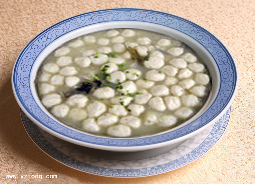 玉珠藏丹就是夾心魚園,揚州高郵十大名菜之一。魚園象征玉珠,夾心的肉園為丹。巧妙地將魚肉結合在一起,使珠中藏肉味,丹外聞魚香。