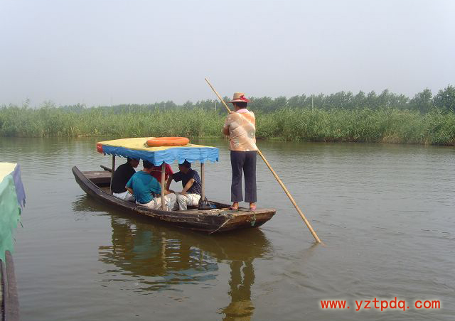 荷園在寶應的水泗,那里是一方荷的世界。到荷園去看荷是少不了要坐船的,船,是那種小木船,只能容得下五、六個人的樣子。船娘將撐船的竹篙插在水里,一用力,小船便悠悠的在荷花蕩里穿行開來了。