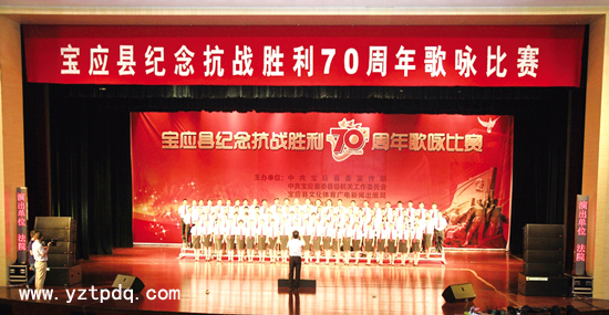 為紀念中國人民抗日戰(zhàn)爭暨世界反法西斯戰(zhàn)爭勝利70周年,9月1日下午,寶應縣紀念抗戰(zhàn)勝利70周年歌詠比賽在縣行政中心唱響,歌聲嘹亮、彩旗飄揚,掀起了寶應縣紀念抗戰(zhàn)勝利70周年的高潮。寶應縣領導王友芳、顧長榮、黃才堂、楊步云、王松年等出席活動。