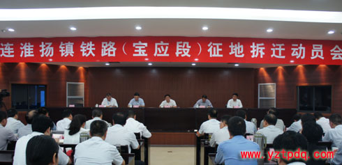 為加快連淮揚(yáng)鎮(zhèn)鐵路(寶應(yīng)段)建設(shè)步伐,保障項(xiàng)目順利實(shí)施,9月30日,江蘇寶應(yīng)縣委、縣政府專題召開連淮揚(yáng)鎮(zhèn)鐵路(寶應(yīng)段)征地拆遷動員會。縣委副書記、代縣長王逍霄在會議上要求,要圍繞“高”、“嚴(yán)”、“快”三個(gè)字,做好征地拆遷工作。縣委常委、常務(wù)副縣長張偉主持會議,副縣長閆偉參加,市鐵辦主任尹建平、中鐵十九局集團(tuán)連淮揚(yáng)鎮(zhèn)鐵路項(xiàng)目指揮長劉宏圖應(yīng)邀出席會議。