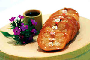 明清時(shí)期,寶應(yīng)白蓮藕粉被列為皇室貢品,有“鵝毛雪片”之稱;寶應(yīng)藕菜“蜜餞捶藕”滿譽(yù)江淮,為四方賓客所稱道。當(dāng)時(shí)寶應(yīng)名士喜好 藕菜,產(chǎn)生了“全藕席”,室供碗蓮盆景,壁掛荷花詩 畫,席中放一花瓶,以清水插鮮荷花數(shù)朵,色香味具全, 頗具雅趣。當(dāng)今揚(yáng)州的“全藕宴”列為寶應(yīng)十大名菜之首,給您帶來清淡、涼爽、馨香的感受。
