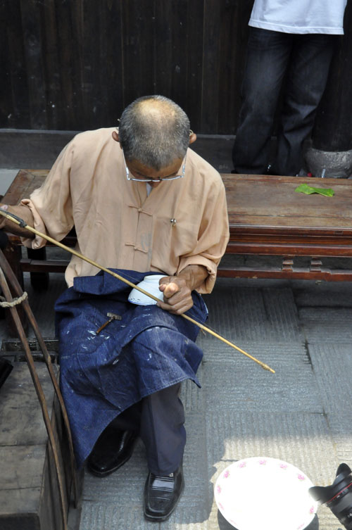 日常使用陶瓷器很普及,因此各地都能看到補碗匠,他們一般沒有固定的攤位,挑一副簡易擔子,內(nèi)存必要的工具和材料,走街穿巷攬生意做,從那“補碗哦,補碗哦……”吆喝的長腔中,你能發(fā)覺他們不是本地人。操此營生的,以江西老表居多,景德鎮(zhèn)是我國著名的瓷都,產(chǎn)量豐富,由此衍生出“補碗”行業(yè)也是很自然的事情。有一句歇后語:江西人補碗——自顧自,即是從補碗鉆孔時發(fā)出的“口茲口茲”有節(jié)奏的聲響引發(fā)的,它似乎沒有譏諷老表的意思,而是抨擊自私自利的行為。隨著補碗行當?shù)南觯@句歇后語也已淡出江湖。補碗匠大多身懷絕技,小到酒杯,大到幾個人合抱不過來的醬缸,他們都有本領(lǐng)使之“完璧”。有些人家,祖?zhèn)鞯恼滟F瓷器有了裂紋,未雨綢繆,預(yù)先給“補”起來;而尋常人家,生活節(jié)儉,只要“補”比買新的便宜,一只破碗他們都不舍得丟棄,湊合著補一補再用。當然,如今可不這樣了,瓷器磕破了,一扔了之,誰也不會想到去“補”。