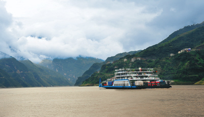 圖為一艘輪船行駛在三峽西陵峽境內(nèi)秭歸縣屈原鎮(zhèn)水域。