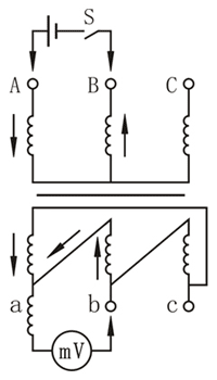 圖1-2 直流法測(cè)三相變壓器聯(lián)接組標(biāo)號(hào)的接線圖