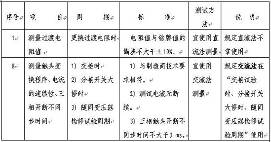 為了解決分接開(kāi)關(guān)現(xiàn)場(chǎng)試驗(yàn)問(wèn)題,電力研究單位進(jìn)行了大量的研究和現(xiàn)場(chǎng)試驗(yàn)工作,將交流測(cè)試技術(shù)應(yīng)用于分接開(kāi)關(guān)現(xiàn)場(chǎng)試驗(yàn),獲取了必要的試驗(yàn)數(shù)據(jù),積累了一定經(jīng)驗(yàn),并制定出電力行業(yè)新標(biāo)準(zhǔn)《DL/T265-2012變壓器有載開(kāi)關(guān)現(xiàn)場(chǎng)試驗(yàn)導(dǎo)則》。制定新標(biāo)準(zhǔn)的目的在于,規(guī)范高壓試驗(yàn)專業(yè)分接開(kāi)關(guān)現(xiàn)場(chǎng)試驗(yàn)項(xiàng)目、試驗(yàn)方法、缺陷判斷標(biāo)準(zhǔn)、分析方法,對(duì)各類有載分接開(kāi)關(guān)投運(yùn)前及按檢修試驗(yàn)周期進(jìn)行有效試驗(yàn),準(zhǔn)確判定分接開(kāi)關(guān)的動(dòng)作特性,可靠發(fā)現(xiàn)分接開(kāi)關(guān)切換過(guò)程中的異常情況,準(zhǔn)確判定分接開(kāi)關(guān)缺陷。新標(biāo)準(zhǔn)對(duì)測(cè)量變壓器有載分接開(kāi)關(guān)的測(cè)試方法、測(cè)量項(xiàng)目、測(cè)試周期做出了明確規(guī)定。