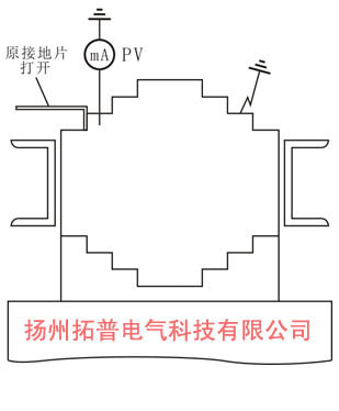 3)交流電流法。在變壓器低壓繞組通入交流電壓220~380V,此時鐵芯中有磁通流過。如果有接地故障,用毫安表測量會有電流。當(dāng)毫安表沿鐵軛各級逐點(diǎn)測量,毫安表指示電流為零時,該處為接地點(diǎn)。