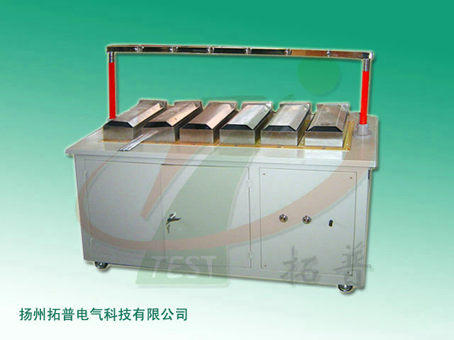 由水槽、控制臺(tái)兩部分組成。水槽分上下區(qū),上區(qū)為6只小水槽,下區(qū)為試驗(yàn)變壓器,控制臺(tái)設(shè)有過(guò)流保護(hù)、零位保護(hù)、時(shí)間保護(hù)及報(bào)警等功能。