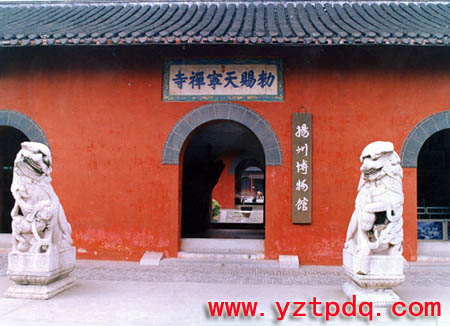 揚(yáng)州天寧寺是清代揚(yáng)州八大名剎之一。但它的歷史到底始于何時(shí),眾說(shuō)紛紜。最早的說(shuō)法,是說(shuō)唐代柳毅舍宅造寺,這個(gè)柳毅就是唐代傳奇《柳毅傳》中的主人公。柳毅是小說(shuō)中的人物,我們也許不必深究。普通的傳說(shuō),是東晉時(shí)謝安捐出別墅建寺,以供尼泊爾僧人佛馱跋陀羅在此翻譯《華嚴(yán)經(jīng)》。但是,對(duì)這一說(shuō)法學(xué)者也有不同的意見。比較可靠的說(shuō)法,應(yīng)該是《寶佑惟揚(yáng)志》所記載的,天寧寺始建于武則天證圣元年(695),以年號(hào)為名,最初稱為“證圣寺”?!秾氂游P(yáng)志》是宋代編纂的揚(yáng)州志書,與建寺時(shí)間較近,當(dāng)時(shí)寺廟的名聲又很大,當(dāng)不會(huì)有太大出入。北宋真宗大中祥符五年(1012),證圣寺改名“興教院”。宋徽宗政和二年(1112),全國(guó)重要州府均建“天寧寺”,所謂“建寺”也包括將原有的寺廟更名,于是賜予此寺“天寧禪寺”之名,從此沿襲至今?,F(xiàn)在全國(guó)很多地方都有天寧寺,來(lái)歷就在于此。