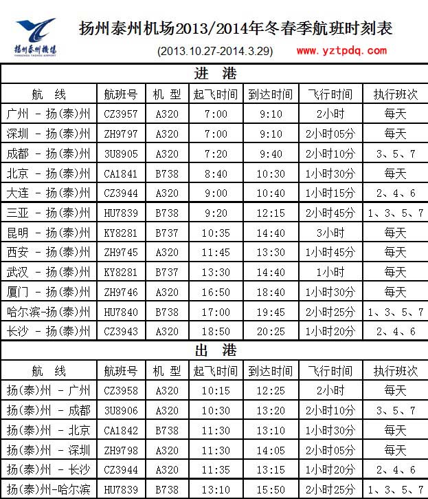 每年10月下旬開始,機票市場進入傳統(tǒng)淡季,因此每年10月底也進入民航冬春航班換季的重要時刻。近日,從民航總局獲悉,2013年冬季至2014年春季全國民航航班換季工作準備就緒,新的航班計劃將自2013年10月27日起執(zhí)行。揚州泰州機場提醒消費者注意根據(jù)航線與價格變化,及時調(diào)整出行計劃。