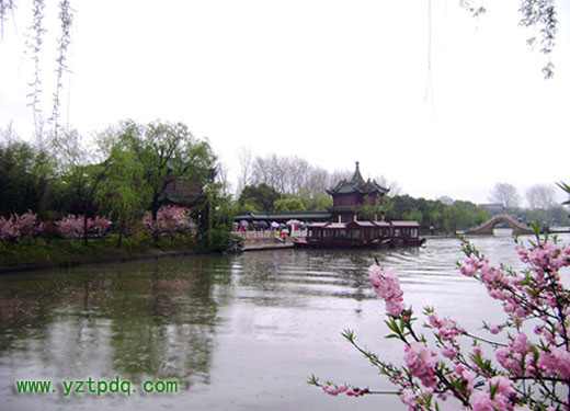 很多地方本來很美,但是也許旅游旺季時人多了也沒有意思,但那天恰好全無喧囂,沒有到處飄揚的導(dǎo)游旗,沒有小喇叭的尖叫,就覺得什么都很好,沒有一處“視覺污染”。于是就覺得二十四橋特別詩情畫意,覺得詩畫長廊特別舒展開闊,覺得“四橋煙雨”特別清新靜美……這就值得流連又流連了,春意濃濃地化在瘦西湖中,慢慢的泡開來,溢了滿湖;而我們,真甘愿在這里沉沉地品這杯泡得恰到好處的春茶。