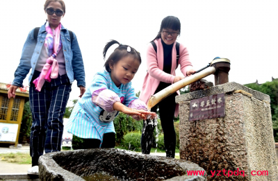 揚(yáng)州東關(guān)街“手壓井”小景點(diǎn)成為小游客寓教于樂的“活教材”,引導(dǎo)孩子們從小養(yǎng)成良好的衛(wèi)生習(xí)慣。配圖為小游客在家長的陪同下體驗“手壓井”洗手帶來的樂趣。